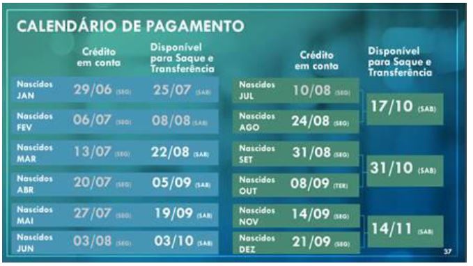 A partir deste sábado, 3,9 milhões de beneficiários nascidos em junho e mais de 96 mil também nascidos em junho do novo lote de elegíveis poderão sacar o benefício nos caixas eletrônicos, lotéricas e correspondentes CAIXA Aqui, além de transferir valores para contas da CAIXA ou de outros bancos.