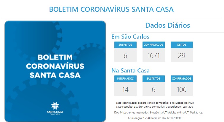 INTERNADOS POR COVID-19 NA SANTA CASA SÃO CARLOS – 12/08/2020