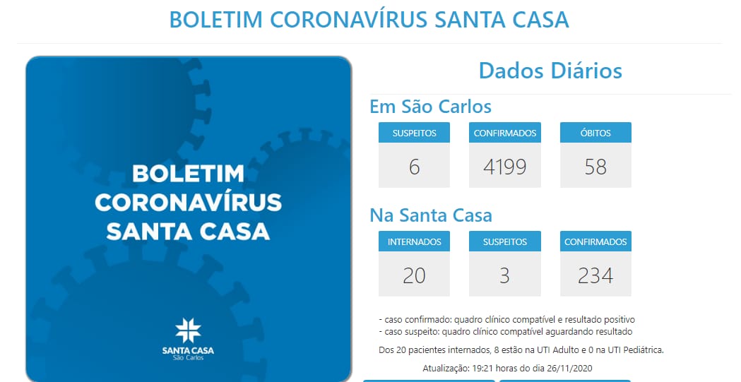 INTERNADOS POR COVID-19 NA SANTA CASA SÃO CARLOS – 26/11/2020